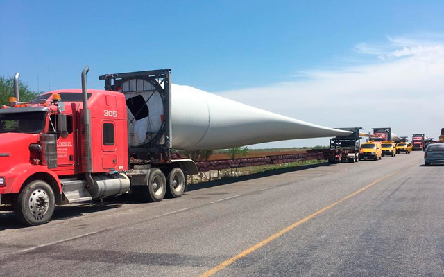 Las aspas de una dimensión de 30 metros de distancia cada una y de hasta dos metros de ancho son movilizadas con equipo especial