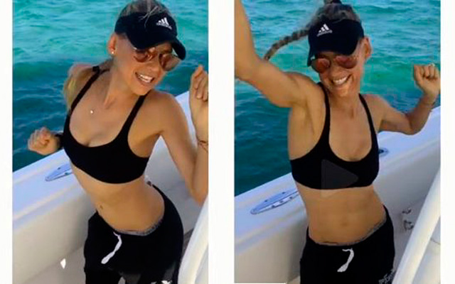La rubia se le vio cantando y bailando felizmente en el mar mientras paseaba en un bote, en el interior de su casa y también al lado de su mascota, un perro