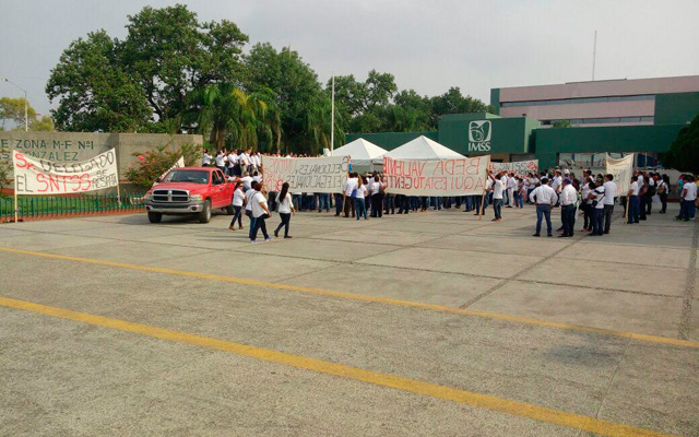 Sindicalizados se manifiestan en el IMSS
