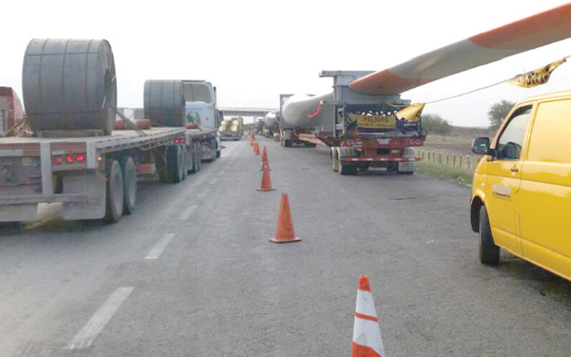 CIUDAD VICTORIA, Tamaulipas.- Continúan viajando estructuras gigantes por las carreteras de Tamaulipas, al ser trasladadas hélices de más de 30 metros de distancia que utilizarán los 45 aerogeneradores del Parque Eólico Tres Mesas, ubicado en Llera, el que será uno de los más grandes del País.