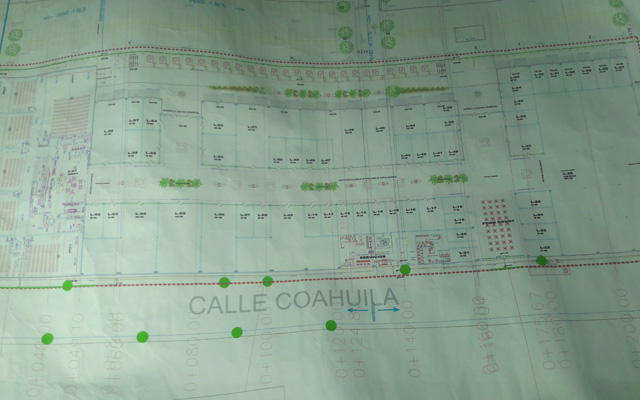 Planos proporcionados por trabajadores hacen ver las especificaciones que se realizarán en las tres hectáreas y media contiguas a las tiendas Coppel y Sam’s luego de la limpieza a cargo de Constructora del Noreste.