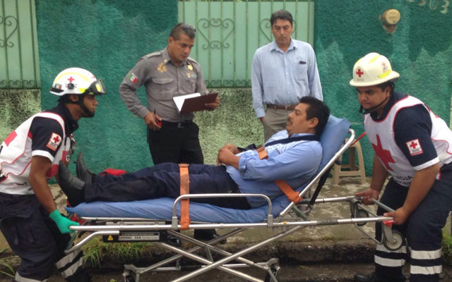Se trasladaba en una motocicleta e iba a su centro de trabajo cuando una joven a bordo de un coche trata de ganarle el paso y chocan
