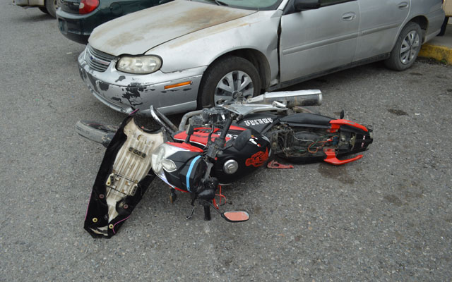 Se desplazaban en una motoneta y rebasan un coche por el área de acotamiento. El chofer del carro se mete a un centro comercial, ocasionando que los adolescentes choquen con él