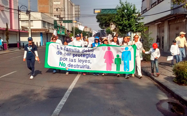 Los católicos caminaron por el centro de Toluca con una pancarta que refería «La familia debe ser protegida por las leyes, no destruirla» y «Yo decido por la familia»