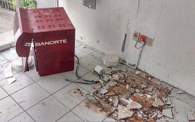 La máquina se encontraba empotrada a un costado de la clínica del ISSSTE. Aunque el velador llamó a la policía, la reacción de ésta fue muy tardía