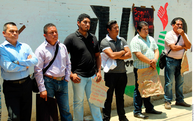 Los integrantes de la Sección 18 de la CNTE reclaman por el despido de maestros faltistas y la reforma educativa