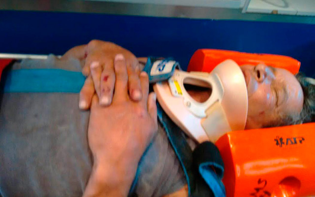 El hombre cortaba el ramaje de un árbol, al montar una rama delgada esta se venció, y cayó
