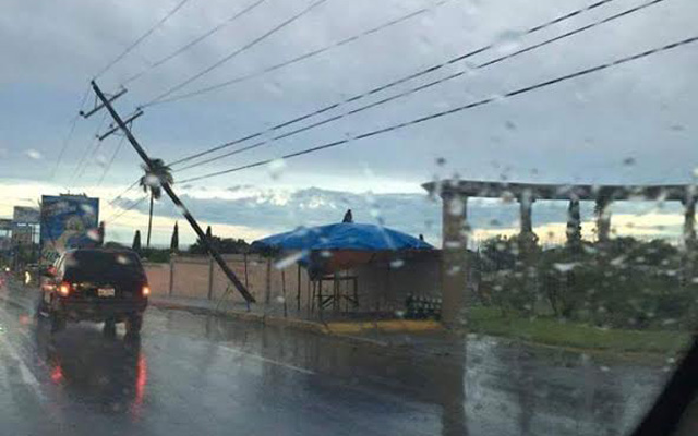Postes, espectaculares, carteles, arboles y techos fueron derribados por las fuertes ráfagas que se sintieron durante el fenómeno que duró aproximadamente una hora
