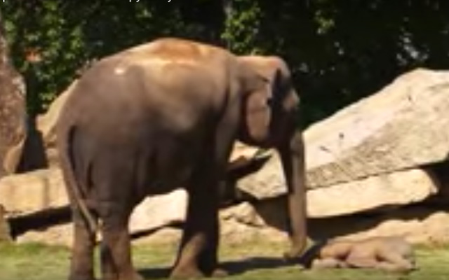 Una madre elefante pide a empleados despierten a su cría (Video)