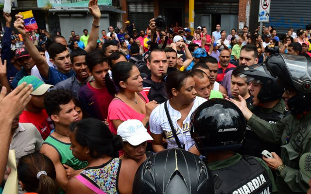 Decenas de personas que protestaban por la escasez de alimentos tomaron este jueves algunas de las principales vías de Caracas