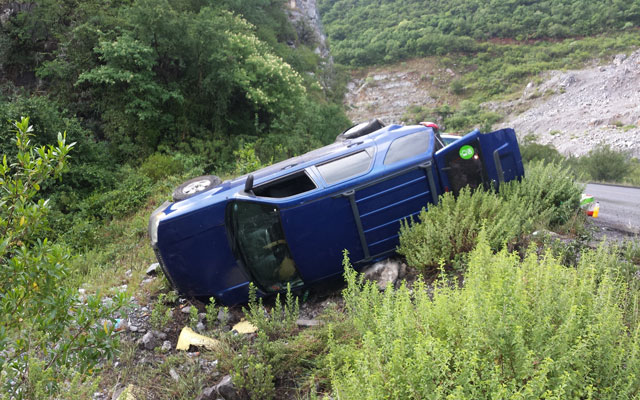 Iba en una camioneta y al perder el control se sale del camino para dar volteretas y queda a centímetros de caer a un voladero