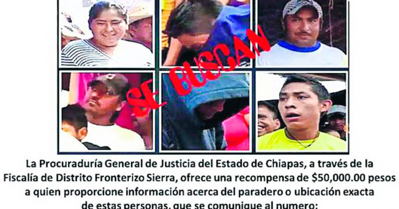 Procuraduría de Chiapas difunde cartel con el rostro de seis responsables