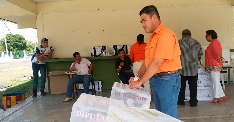 GONZÁLEZ, Tamaulipas.- El candidato del PRI a la Alcaldía de González, Ricardo Alberto Martínez, y su esposa Marlen Cruz, votaron en punto de las 11:56 horas en la sección al 291 en la casilla instalada en la escuela Ursulo Galvan en Villa Manuel.