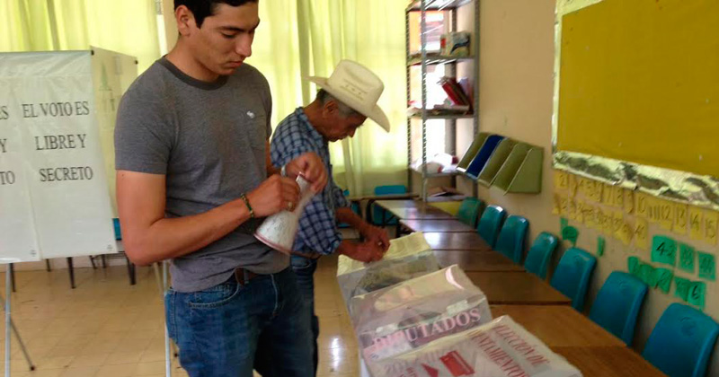 Los electores acuden a votar con aparente tranquilidad en las casillas ubicadas en la cabecera municipal. Las urnas se observan con gran cantidad de boletas.