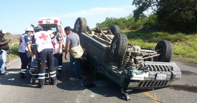 Chofer de una camioneta por poco y pierde la vida ya que al maniobrar para evitar chocar con un carro que se le atravesó, se volcó y quedó llantas arriba