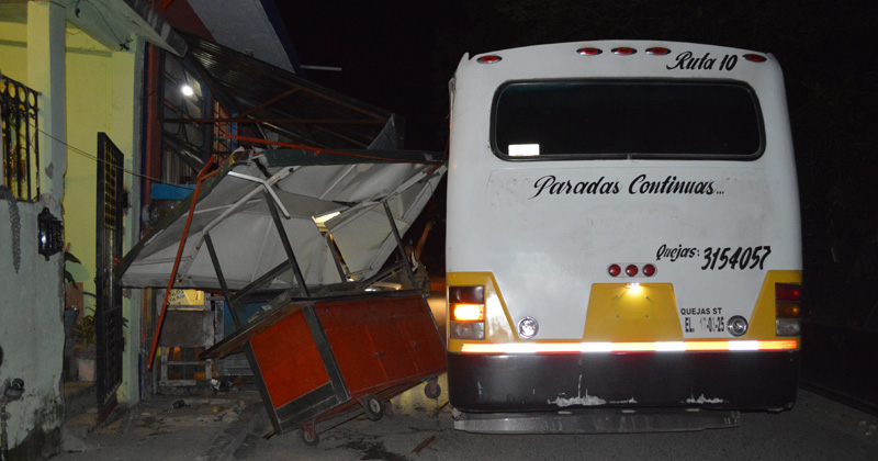 Chofer de microbús andaba tomado y por el estado en que se encontaba pierde el control y se va contra dos puestos de tacos, lesionando a una comensal