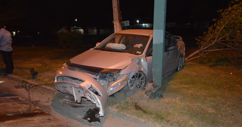 Estudiante andaba tomando con otros conocidos y al perder la dirección se va contra el arbotante y la planta de ornato. Los daños materiales fueron considerables