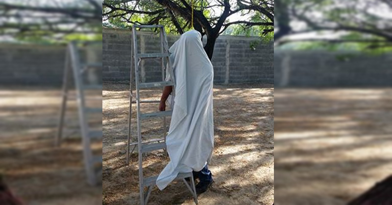 El sitio donde decide quitarse la vida fue en el patio del cendi donde laboraba. Usa una cuerda y la ata al brazo de un árbol. Estudiantes lo encuentran colgado