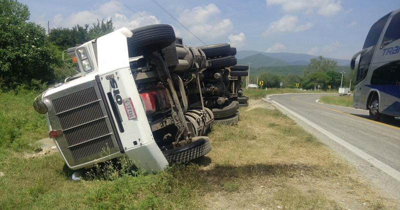 Trailero iba a exceso de velocidad y al tomar una curva pierde el control y se sale de la carretera para quedar recostado. El camionero resultó lesionado y se le hospitalizó
