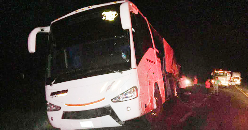 Fuerte susto el que se llevaron los pasajeros de un autobús que fue impactado por un tracto camión, dejando como saldo 13 personas con lesiones menores