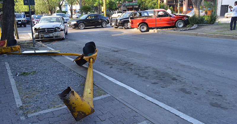 Señora resulta lesionada luego de ser chocada y proyectada contra un semáforo el cual queda derribado