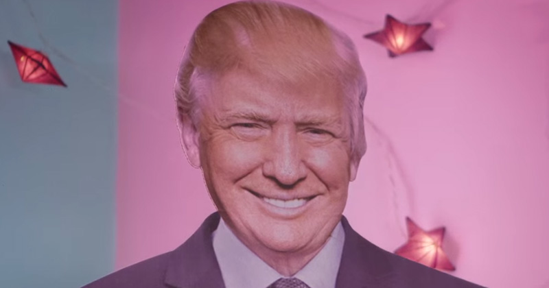 En el material audiovisual, Trump erige muros, se transforma en un robot gigante y destruye el planeta Tierra