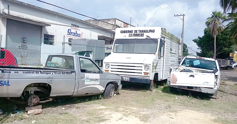 Ocho unidades, desde vehículos compactos hasta camionetas que se encuentran en el patio trasero de la Jurisdicción Sanitaria número II de Tampico serán rematadas como chatarra por parte del gobierno del estado.