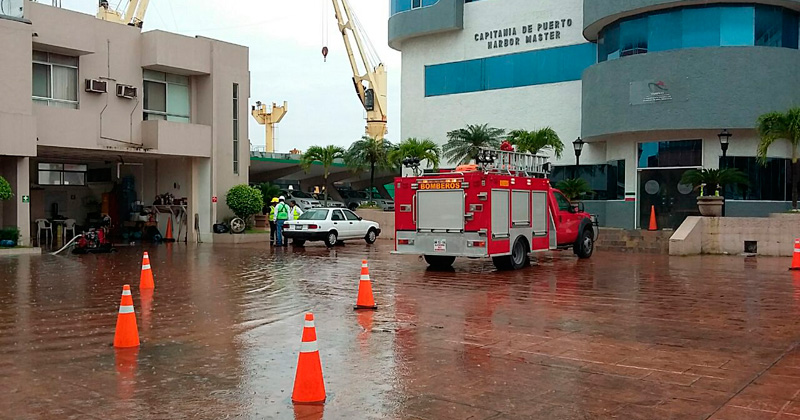 Personal de Bomberos de la dependencia tuvo que realizar trabajos con bombas para sacar el agua del patio