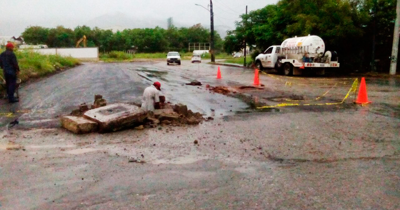 Obreros de la construcción revelaron que repentinamente se agrietó el pavimento sobre un registro y hubo que romper la calle para repararlo