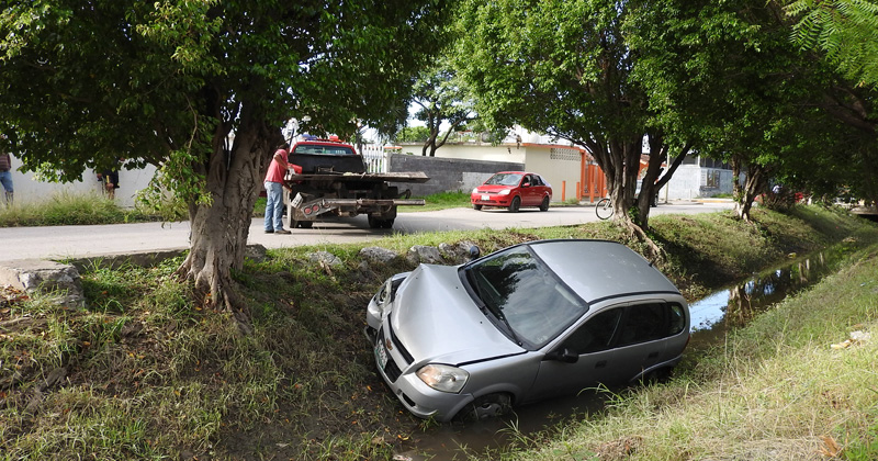 Por el aparente exceso de velocidad con el cual se desplazaba, al evitar chocar, un hombre perdió el control de su unidad y terminó chocando con un árbol y cayendo a la acequía