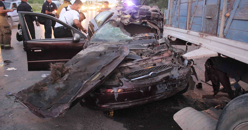 Residente del fraccionamiento Las Brisas estuvo a punto de morir desangrado luego de que quedó prensado en el auto que conducía al estrellarse contra la caja de un camión
