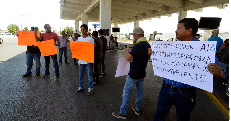 Los manifestantes bloquearon el carril de ingreso de tráileres procedentes de El Paso, Texas