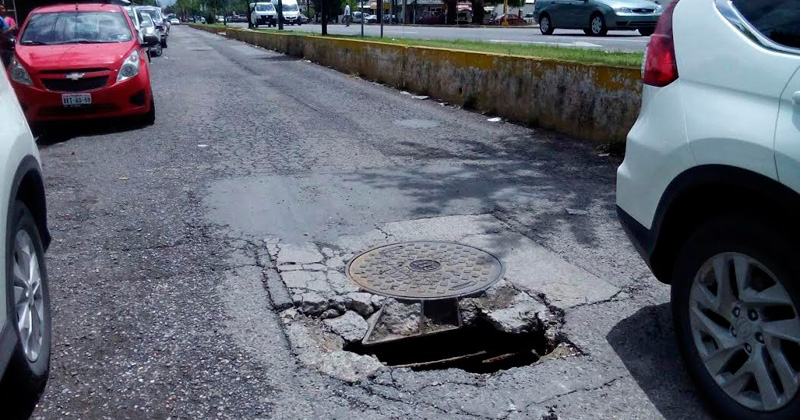 CIUDAD VICTORIA, Tamaulipas.- Con las recientes lluvias, un registro de la Comisión Federal de Electricidad se abrió en la calzada General Luis Caballero, qué con el paso de los camiones pesados del transporte urbano, se ha convertido en un boquete de más de un metro de diámetro que es ya un riesgo para los conductores.