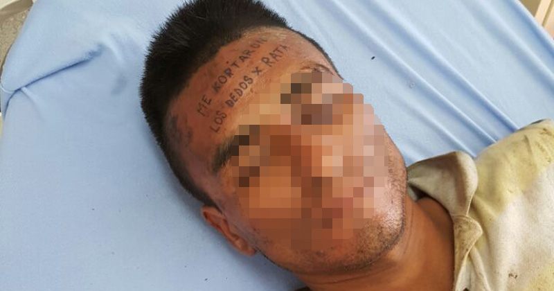 En la frente le tatúan a mecánico “ME KORTARON LOS DEDOS X RATA”. Los dedos son pulgar y meñique de ambas manos