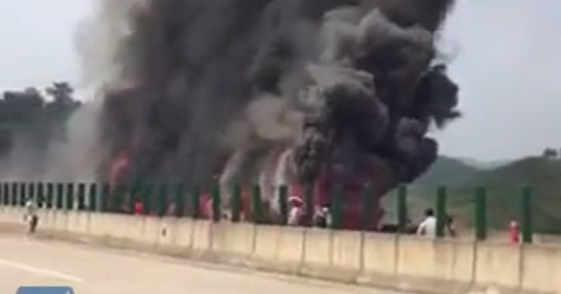 El autobús, que trasportaba a 56 personas, chocó contra una barrera de protección en la carretera