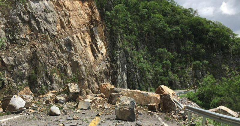El derrumbe se ubica a 14 kilómetros de Victoria sobre la cinta asfaltica, por lo que personal de Obras Publicas y de la SCT preparan los trabajos de limpieza en la zona
