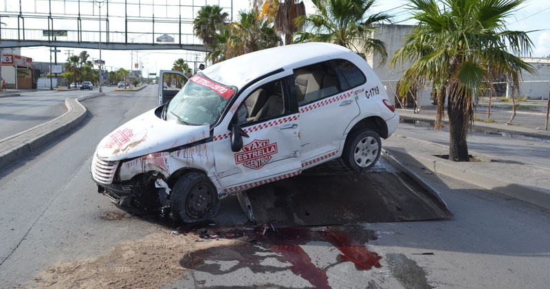 Tumba poste y vuelca taxi
