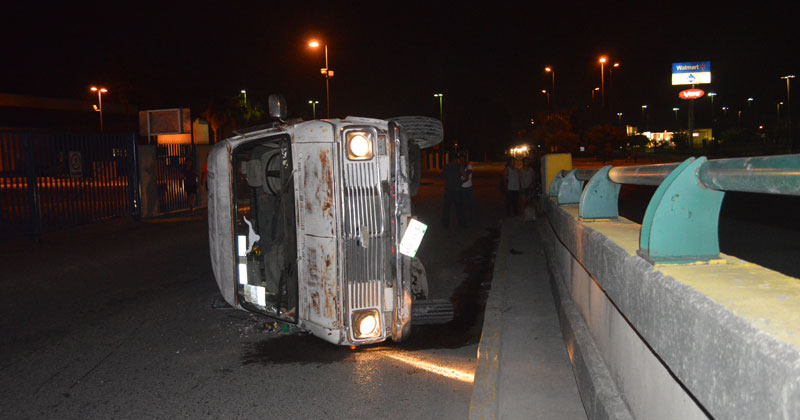 Al llegar a la división que hay entre la joroba y la lateral chofer no se decide por lo que choca contra el muro para quedar recostado. Testigos aseguran que el chofer salió lesionado