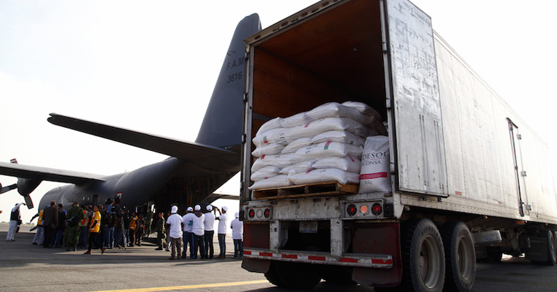 Cargan avión de Sedena con productos básicos para Oaxaca