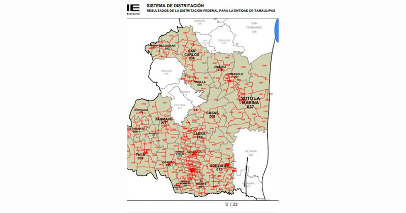 MANTE, Tamaulipas.- Como resultado de la nueva conformación político territorial de Tamaulipas, al sexto distrito electoral con cabecera en El Mante se suman los municipios de Villagrán, Casas, San Carlos y Padilla.