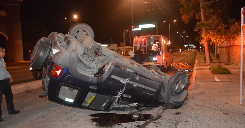 Par de jóvenes se desplazaban a exceso de velocidad en un Jeep. Dan de volteretas y se estrellan con la caseta de seguridad del fraccionamiento Los Naranjos. Ambos están delicados