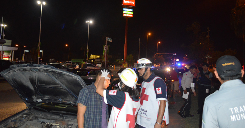 Dos choferes son atendidos por la Cruz Roja al sentirse golpeados. El percance fue por alcance en horas de tráfico
