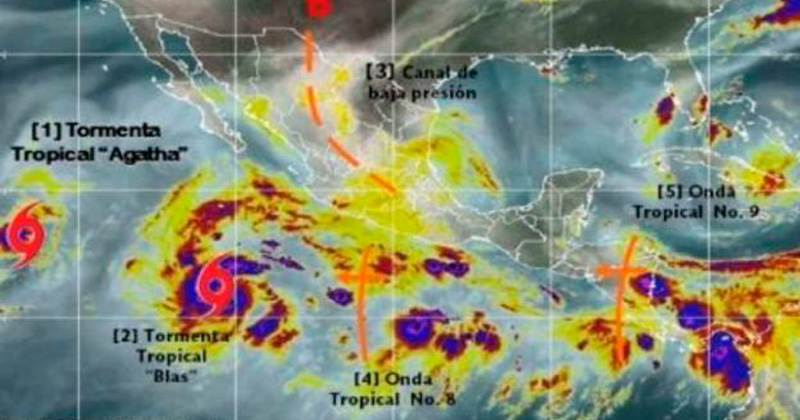 Los desprendimientos nubosos de la tormenta tropical Blas refuerzan la probabilidad de tormentas muy fuertes en el occidente del país