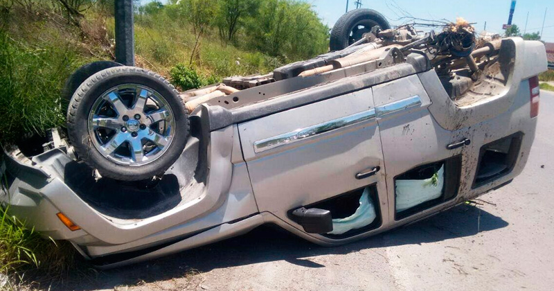 Delincuentes armados vuelcan luego de chocar en Matamoros