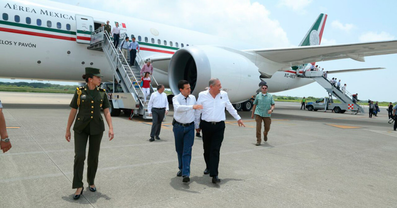 A las 12:41 horas aterrizó el avión de la Fuerza Aérea Mexicana. El Presidente de la República fue recibido por el gobernador Egidio Torre Cantú
