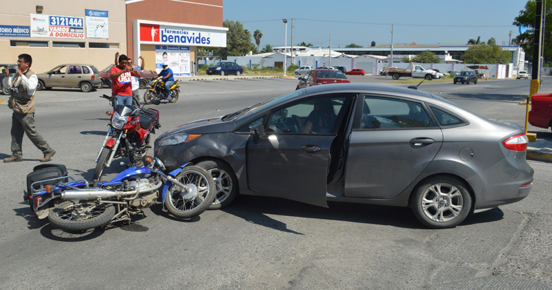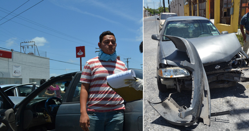 Circulaba en una transitada avenida, pero una joven a bordo de un sedán rebasa el alto obligatorio y causa el choque. Cruz Roja atendió al empleado