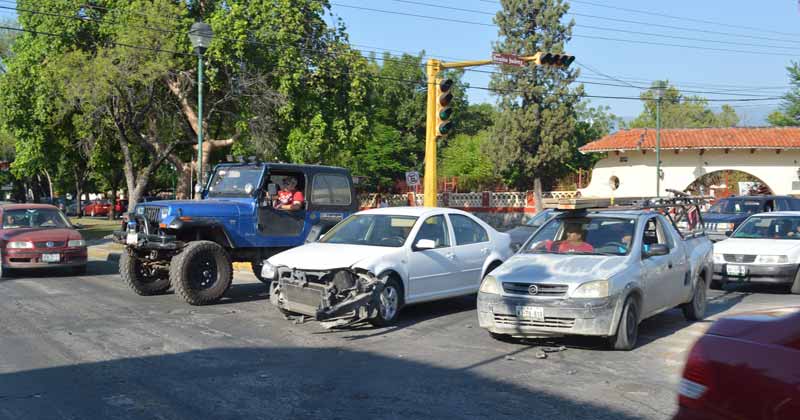 Una mujer de edad avanzada traía una camioneta y la choca con un coche compacto. El tráfico vehicular se afecto por espacio de media hora