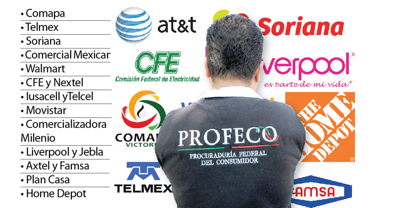 La Comapa de Victoria, las tiendas departamentales Soriana, Comercial Mexicana, Walmart, Cablevisión Sky, Comisión Federal de Electricidad, Nextel, Iusacell, Telcel, Movistar, Comercializadora Milenio, Liverpool, Jebla, Axtel, Famsa, Plan Casa, Home Depot, Telmex y CFE encabezan la lista de las 20 empresas o prestadores de servicios con más quejas en los municipios de Nuevo Laredo, Reynosa, Matamoros, Tampico, Ciudad Victoria durante 2015 y al mes de febrero de 2016.