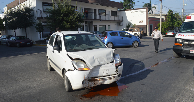 Señora tripulaba su sedan y olvida frenar. Se estrella con otro sedan. La presunta responsable es llevada a un centro hospitalario