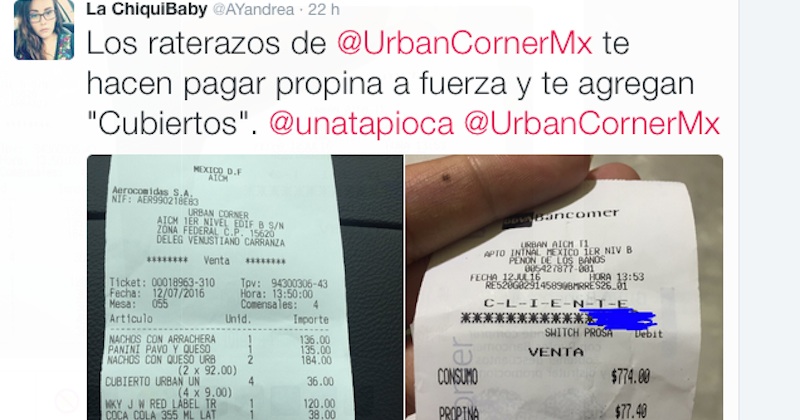 Una usuario de Twitter ha sido bautizada como Lady Cubiertos luego de que denunció que en un restaurante del Aeropuerto de la Ciudad de México (AICM) le cobraron propina y un cargo por cubiertos obligatorio.